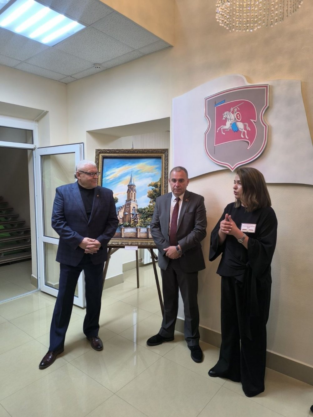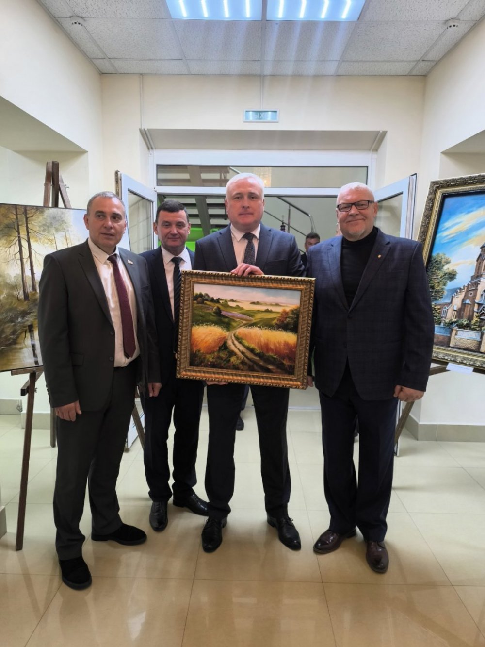 В память о посещении города Речицы, краеведческого музея и встречи с художником руководителю российской делегации Юрасову Андрею Викторовичу была подарена картина Евгения Эдуардовича Шетихина «Родны кут».
